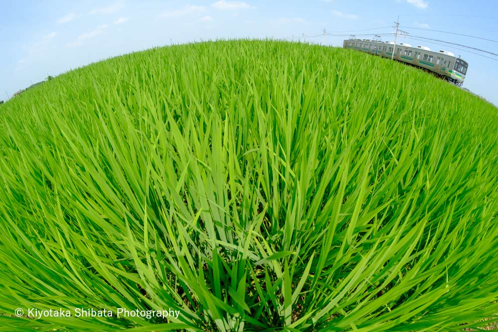 【今週の1鉄】やっぱり地球は丸かった。 2020-08-082020-08-06 お日様の光を浴びて ぐんぐん育った田んぼの稲。 まるで緑の絨毯のようですね! 魚眼レンズを使って撮影したら 世界が丸くなりました。 そうか、地球は丸かったんだ。 (秩父鉄道 新郷〜武州荒木)