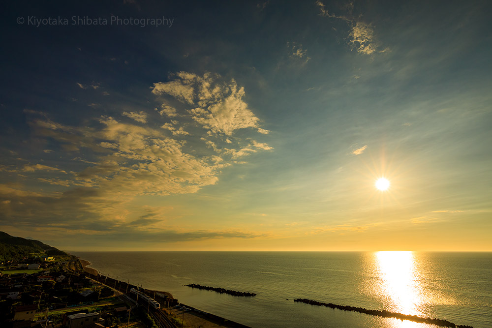 雄大な日本海の夕暮れ。
